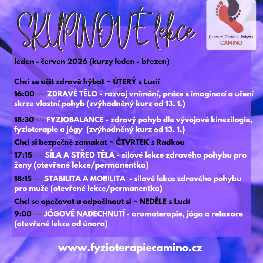 SKUPINOVÉ LEKCE LEDEN - ČERVEN 2026